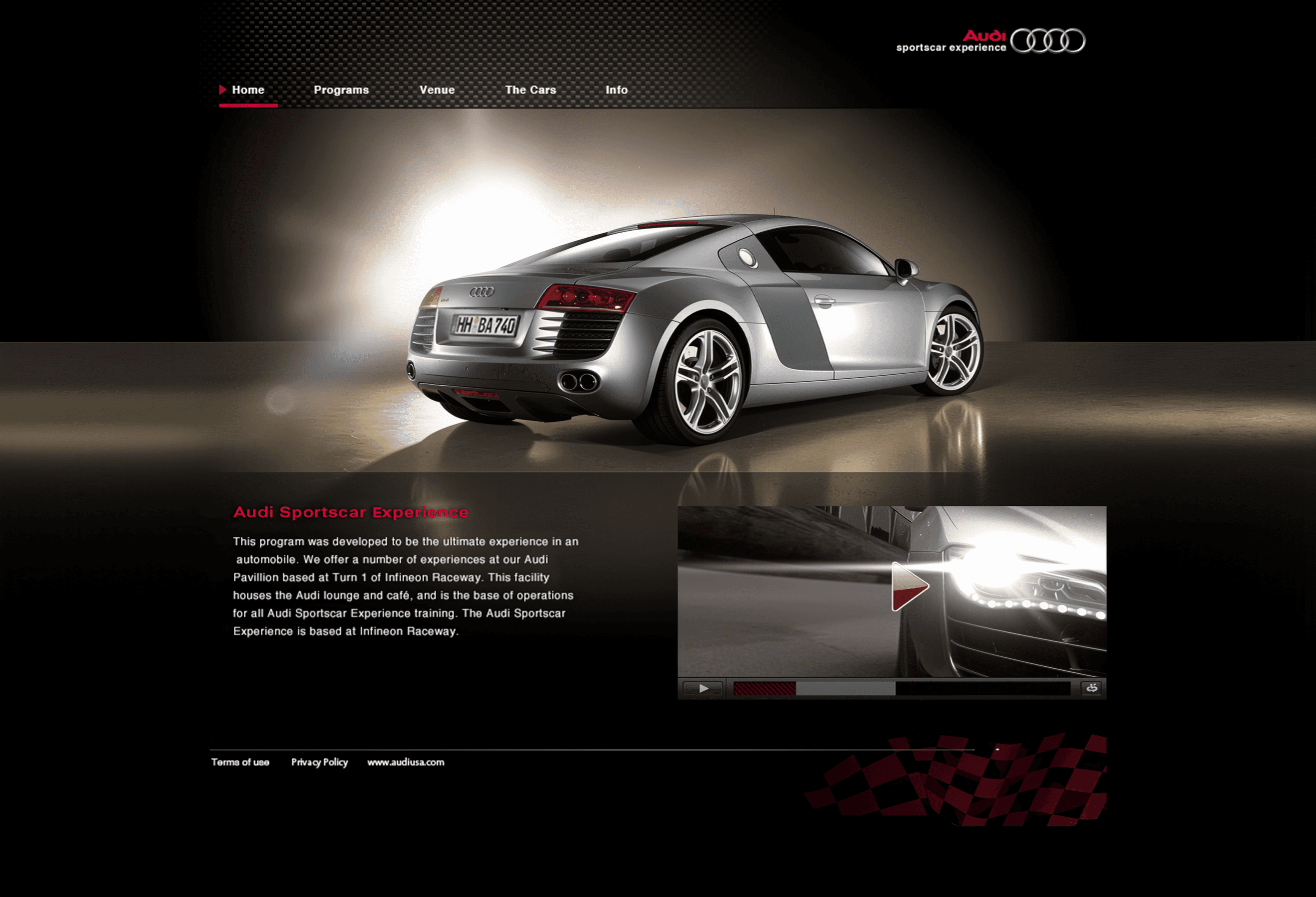 Designed all branding and marketing materials for the Audi Sports Car Experience and Jim Russell Racing School at Sonoma Raceway. Created event signage, environmental graphics, promotional materials, and the official event website. Delivered a cohesive visual system aligned with Audi brand standards across all event touch-points.