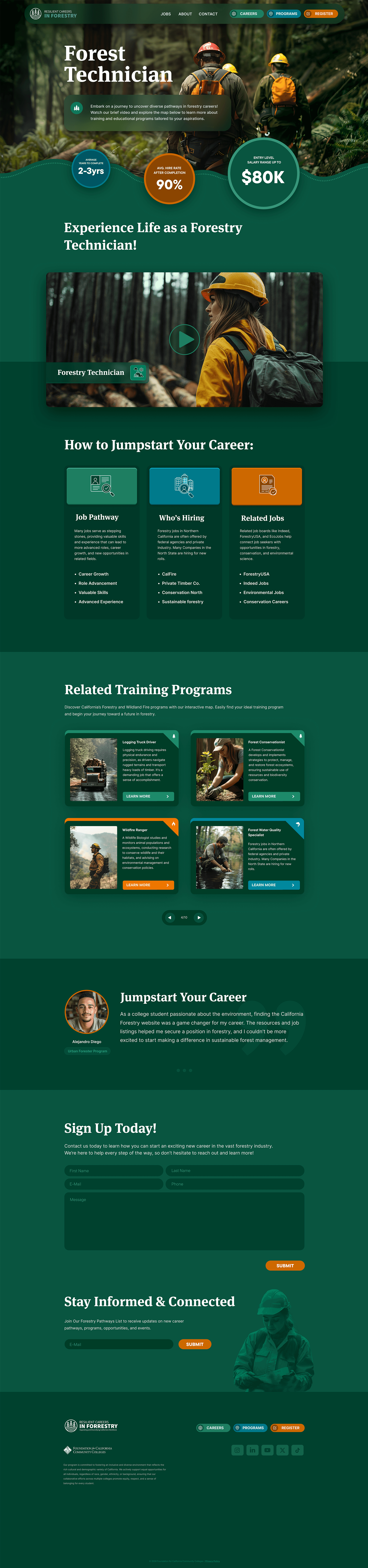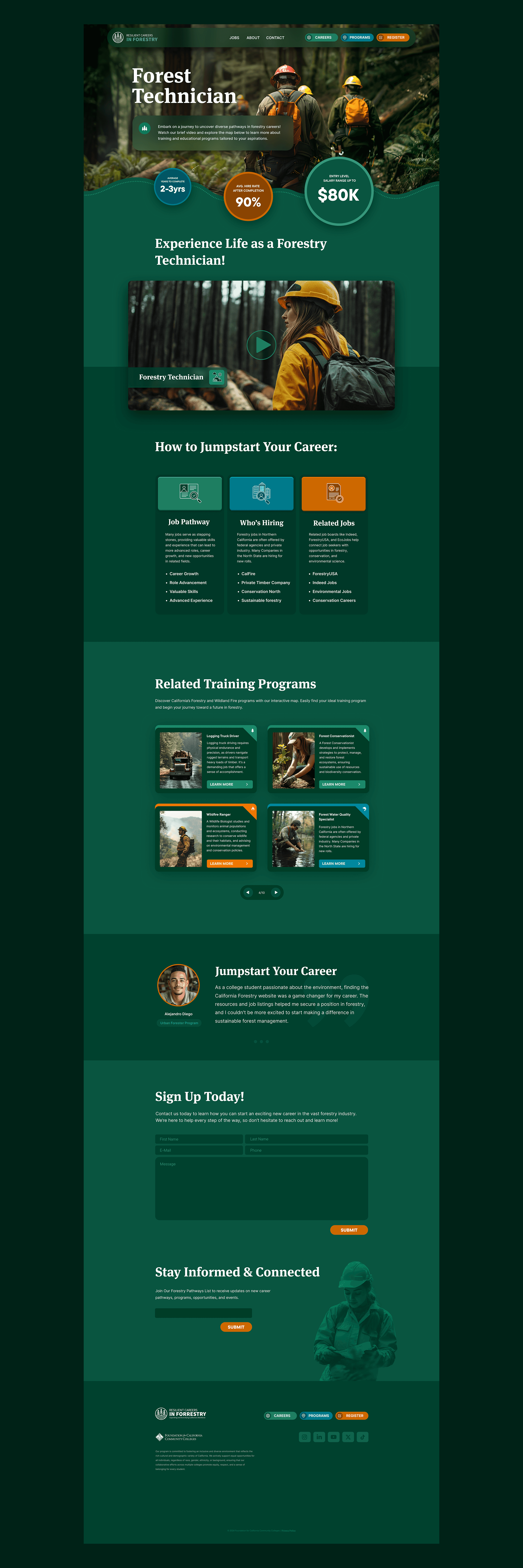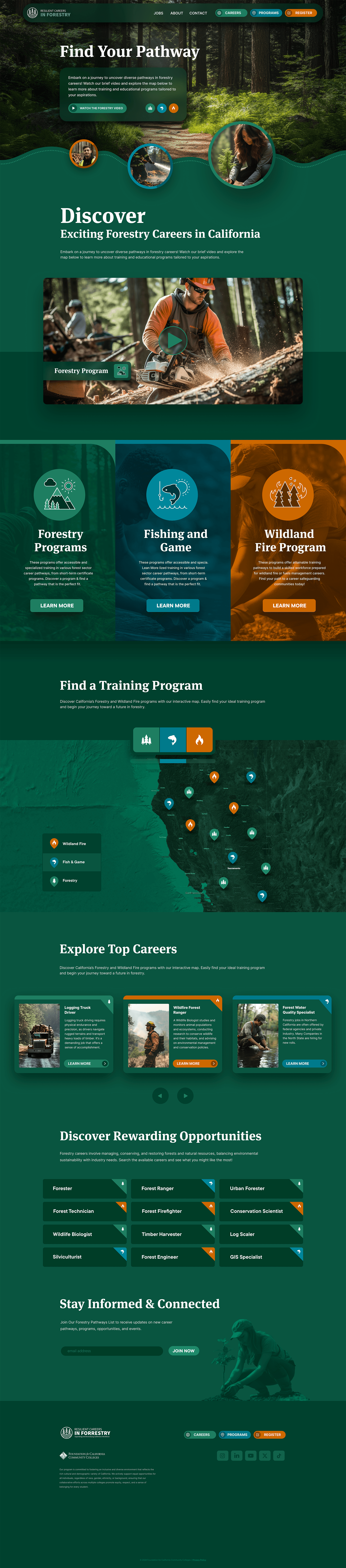 California’s forestry education landscape was fragmented — career information, training programs, and job listings were scattered across dozens of unrelated sites. Students couldn’t see clear pathways into the field, and employers lacked a unified way to reach new talent.